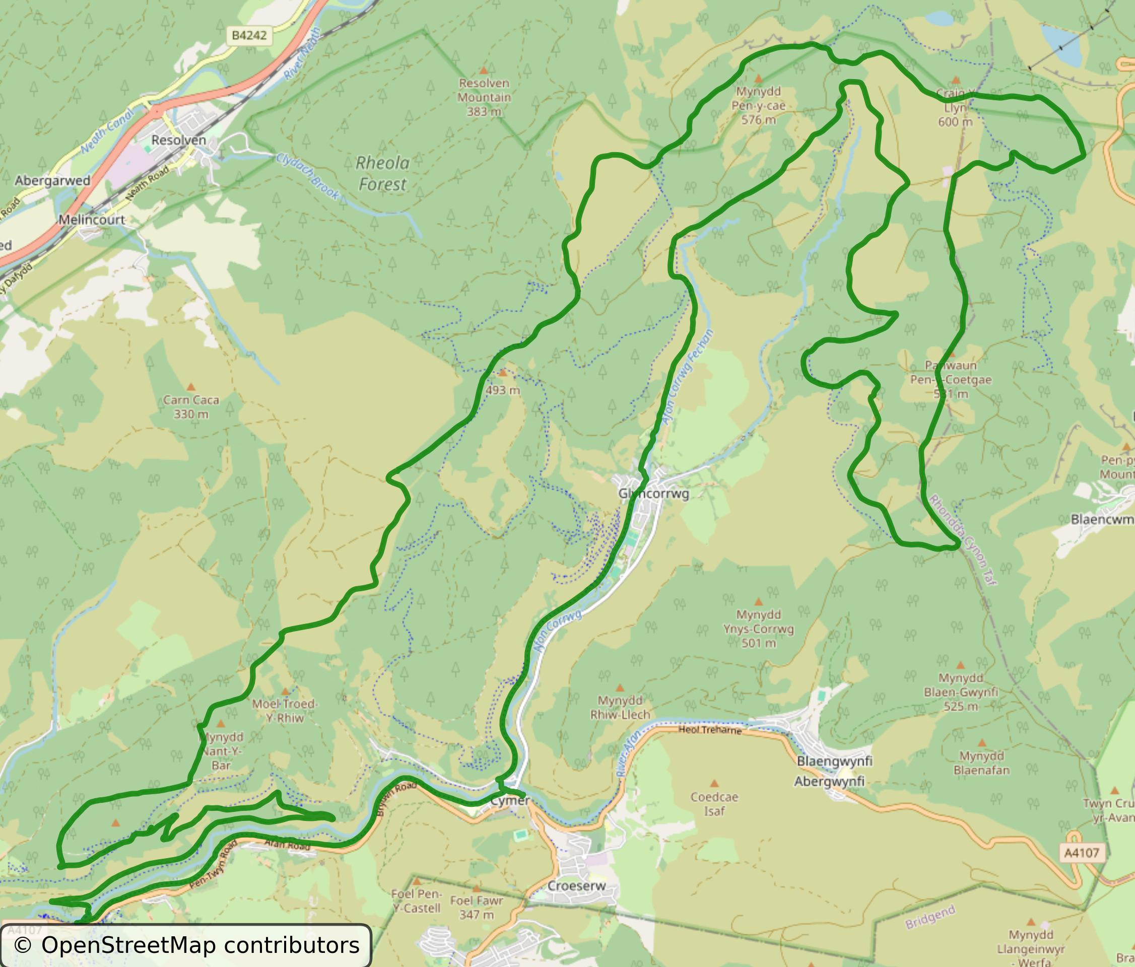 Based on this below but add a section from Cymmer to up the distance a bit https://www.mapmyride.com/routes/view/6570226408/ ToDo ???km, ???m of climbing ...