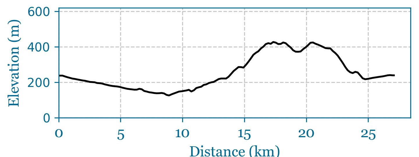 26.3km, 476m of climbing Dynamic Route Map Route Video GPX