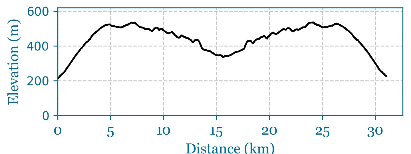 31.8km, 680m of climbing Dynamic Route Map Route Video GPX